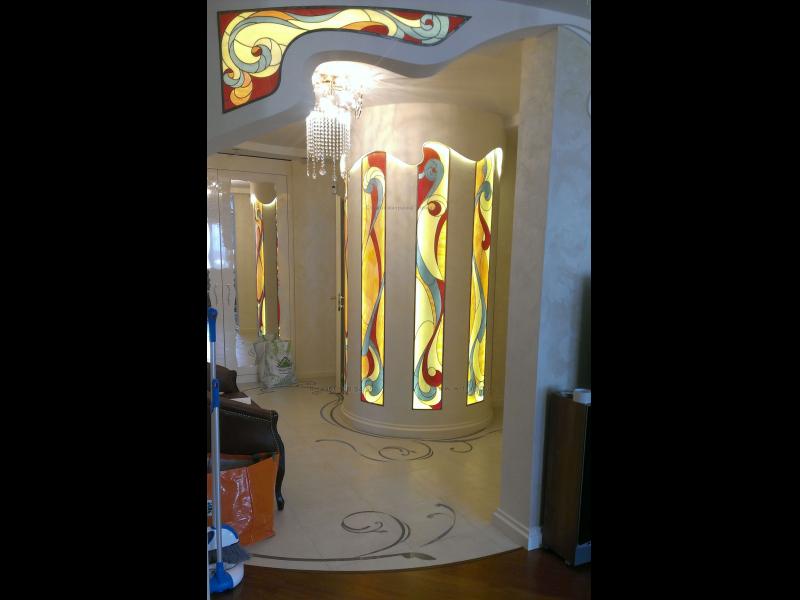 Витражная композиция "Радиусные, лекальные витражи в духе ар-нуво" -> Витраж Тиффани -> Витражи фото. Студия Художественные витражи Ирида