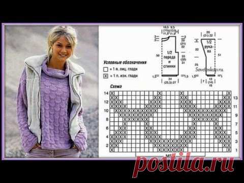Горчичный пуловер спицами.