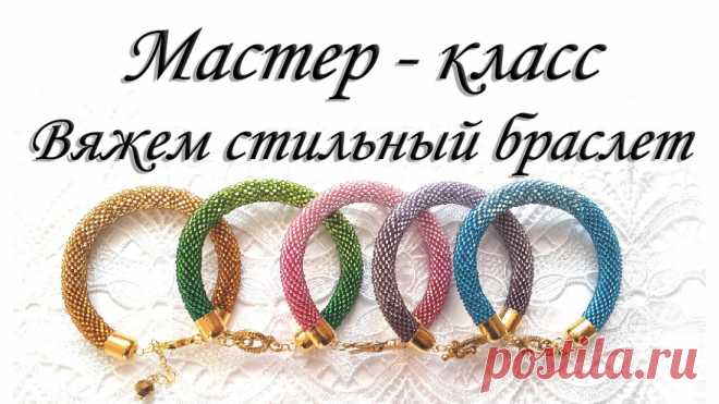 Мастер - класс. Вяжем стильный браслет. Вязание полустолбиком. Жгут из бисера - YouTube