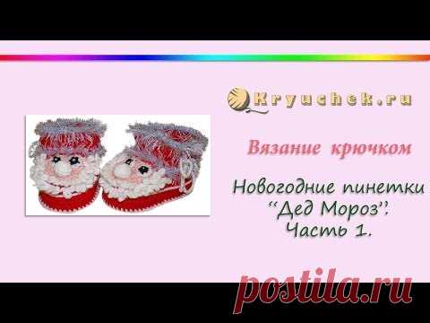 Крючок. Новогодние пинетки "Дед Мороз"