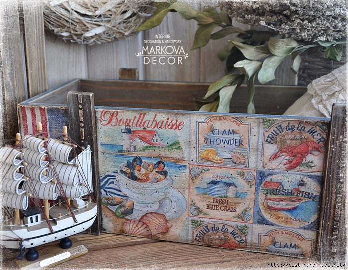 Стильный декупаж деревянного ящика "Fruit de la mer". Мастер-класс от Ольги Марковой