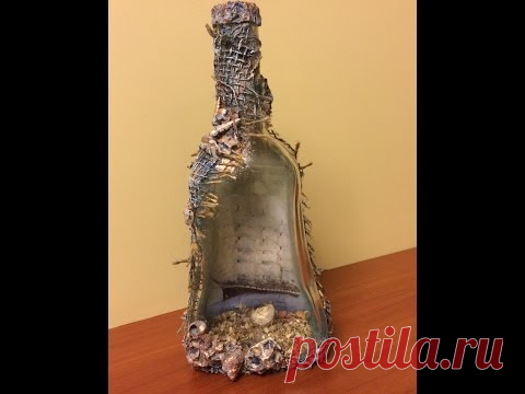 Декорирование бутылки. Обратный декупаж. (Decoration bottle. Reverse decoupage).