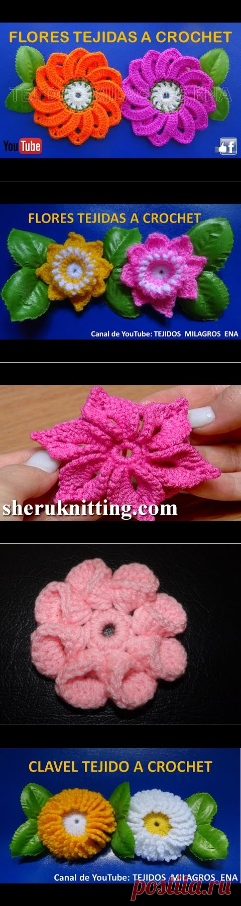 Flor tejida a crochet # 3 para tejer tapetes o carpetas con flores - YouTube