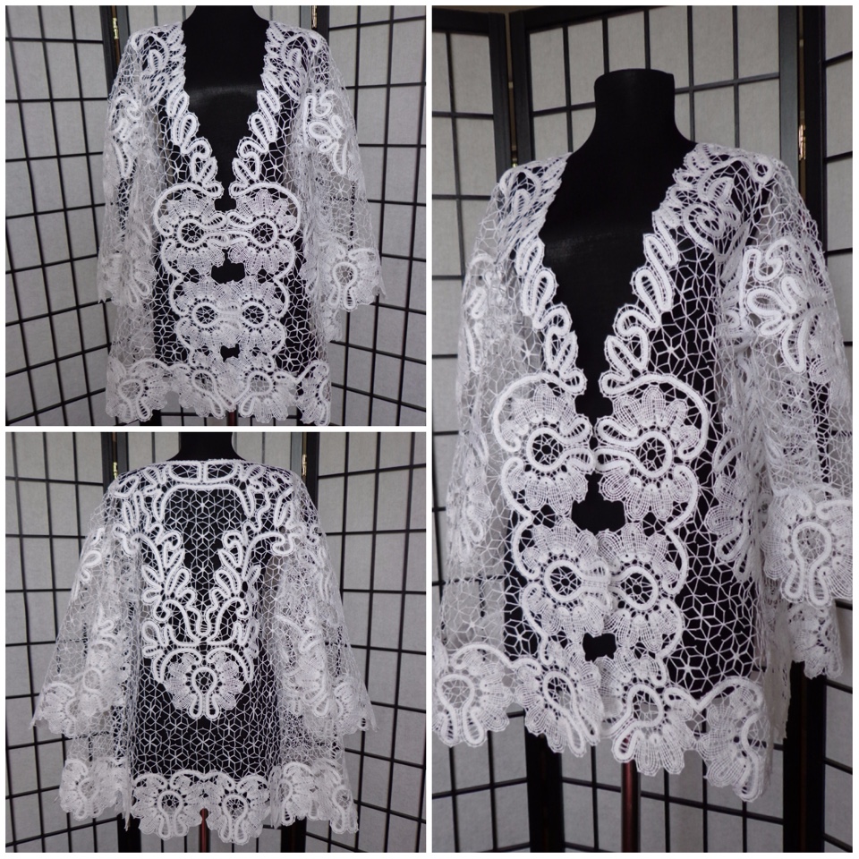 Жакет"Надежда"кружевной сплетен на коклюшках в технике "Елецкое кружево" . Нитка хлопок белого цвета