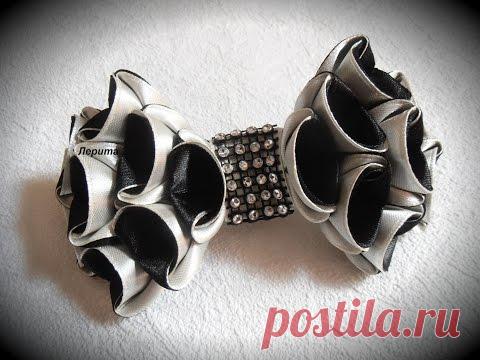 Пышный бантик канзаши для школы из ленты 2,5 см, Мк