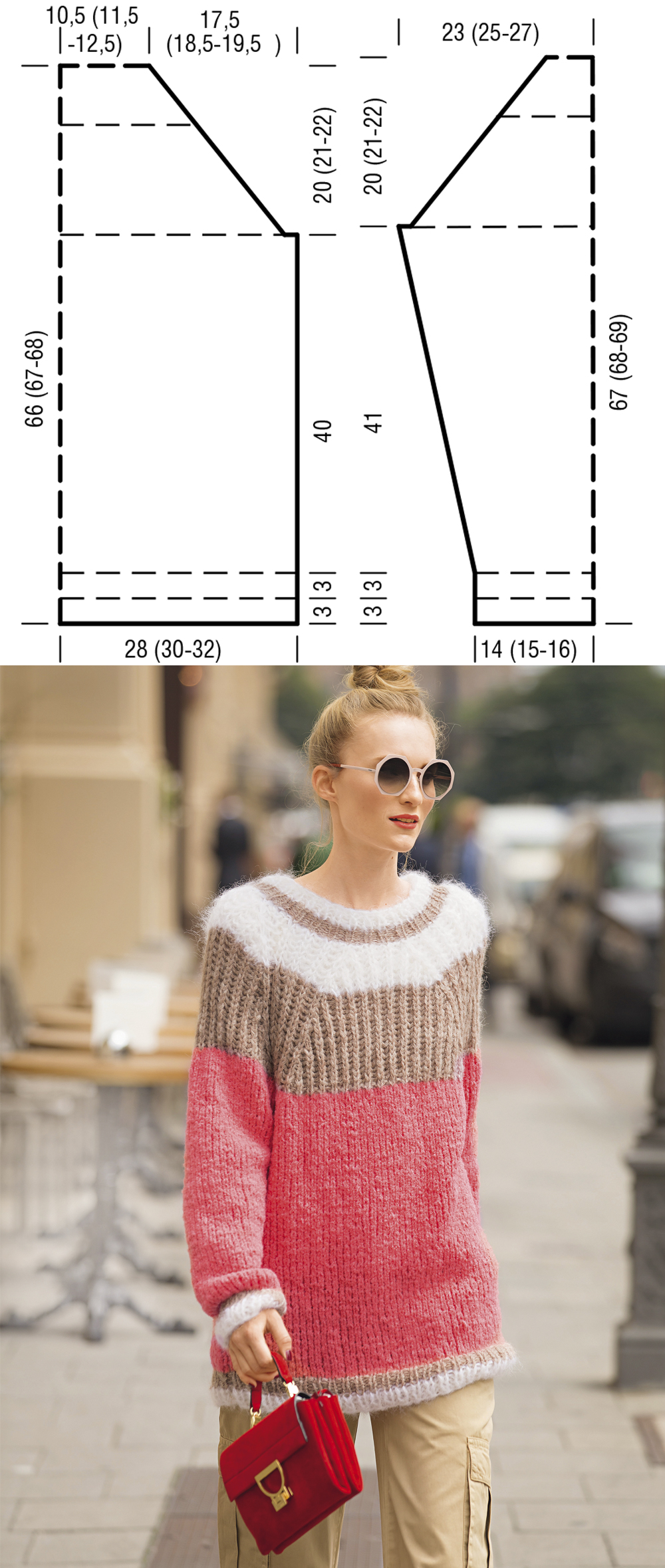 Удлиненный джемпер с патентной кокеткой - схема вязания спицами. Вяжем Джемперы на Verena.ru