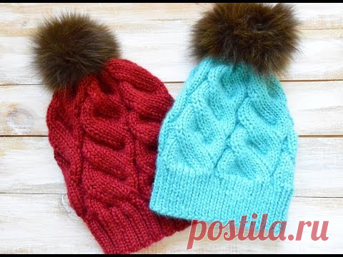 Шапка с косами.Вязание спицами. Мастер класс. Шапка с помпоном . - YouTube