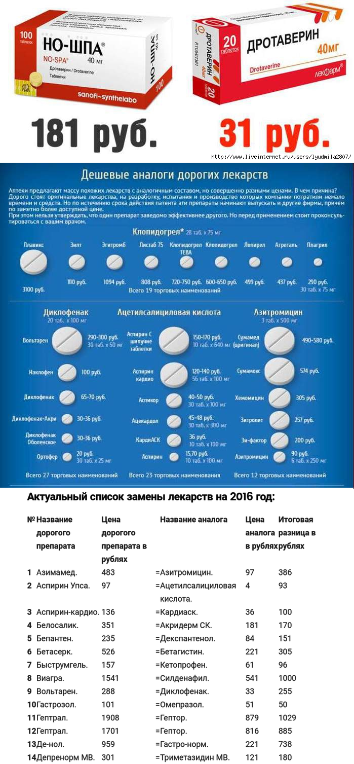 ДЕШЕВЫЕ АНАЛОГИ ДОРОГИХ ЛЕКАРСТВ (СПИСОК НА СЕНТЯБРЬ 2016)