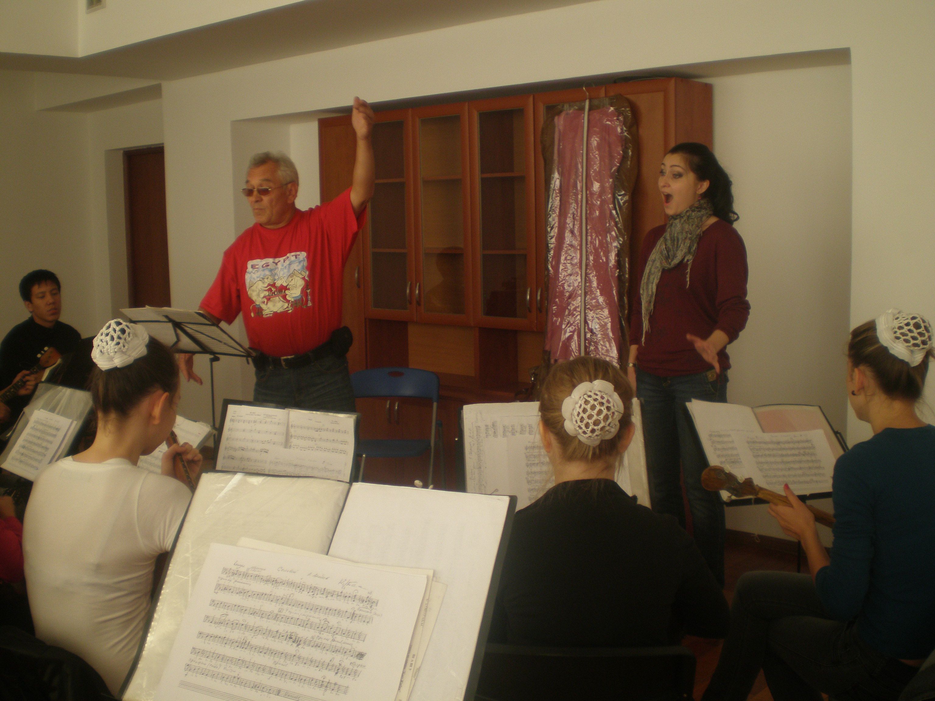 На репетиции с солисткой казахстанского митрополичьего хора Анастасией Кожухаровой. Международный конкурс вокалистов "Романсиада-2011" г. Шымкент. 2011 г.