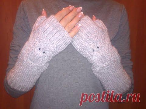 Длинные митенки спицами.Вязаные митенки СОВА.Часть 1.Митенки видео мастер класс.Mitts