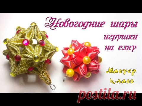 Новогодние шары канзаши из атласных лент своими руками. Елочные игрушки Christmas Toy ball kanzashi - YouTube