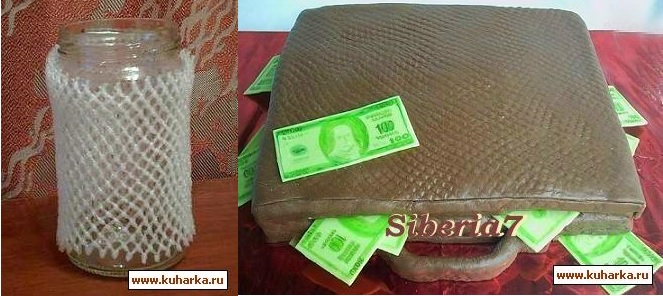 Идея оттиска на мастике (например, на торте в виде чемодана), а "скалочка" вот - сетка от яблок на банке.