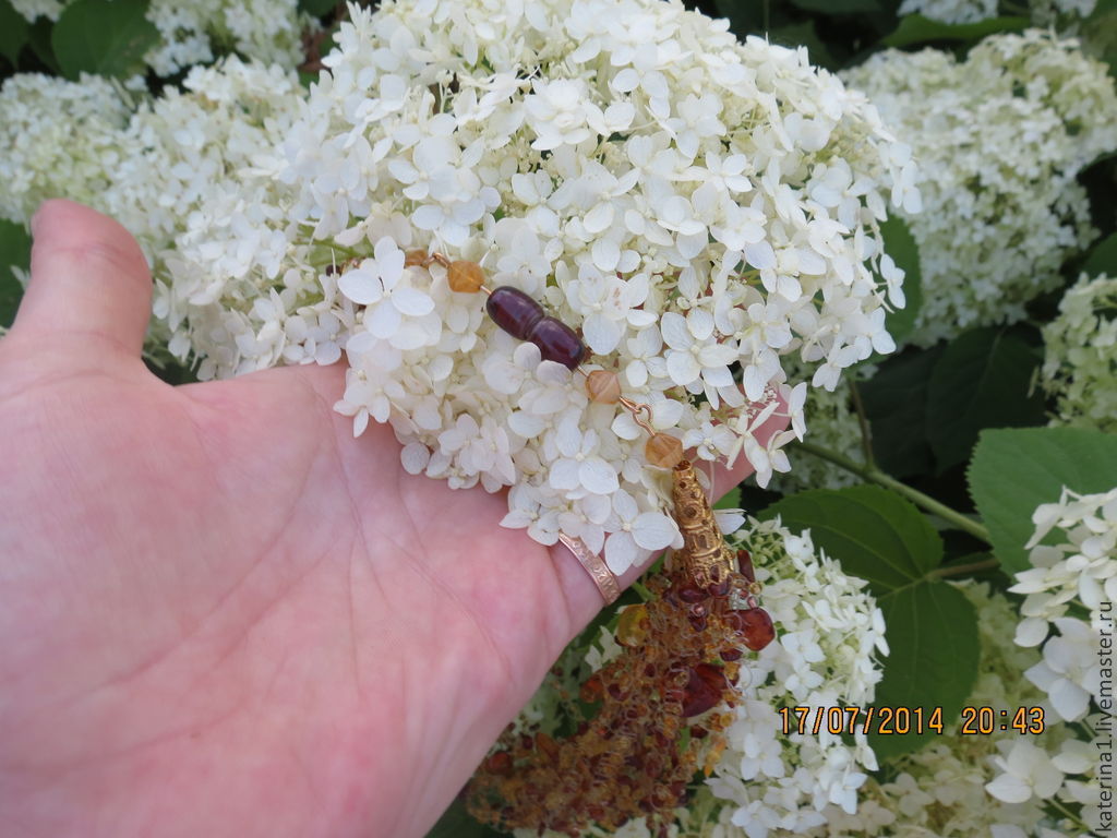 Замочек янтарные бусины, закручивающиеся. Комплект "Осенний вальс" (Колье)