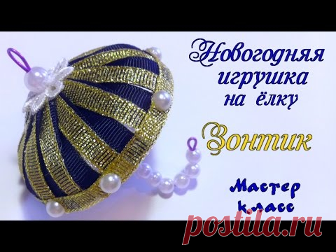 Новогодняя елочная игрушка Зонтик из лент. Мастер класс. DIY Christmas tree toy umbrella of ribbons - YouTube
