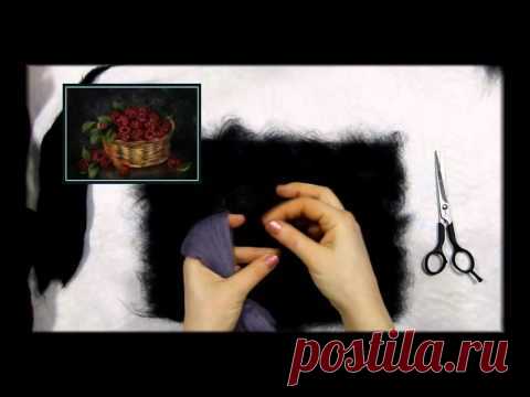 Школа шерстяной живописи Яны Богдановой. Картина из шерсти "Малинка"