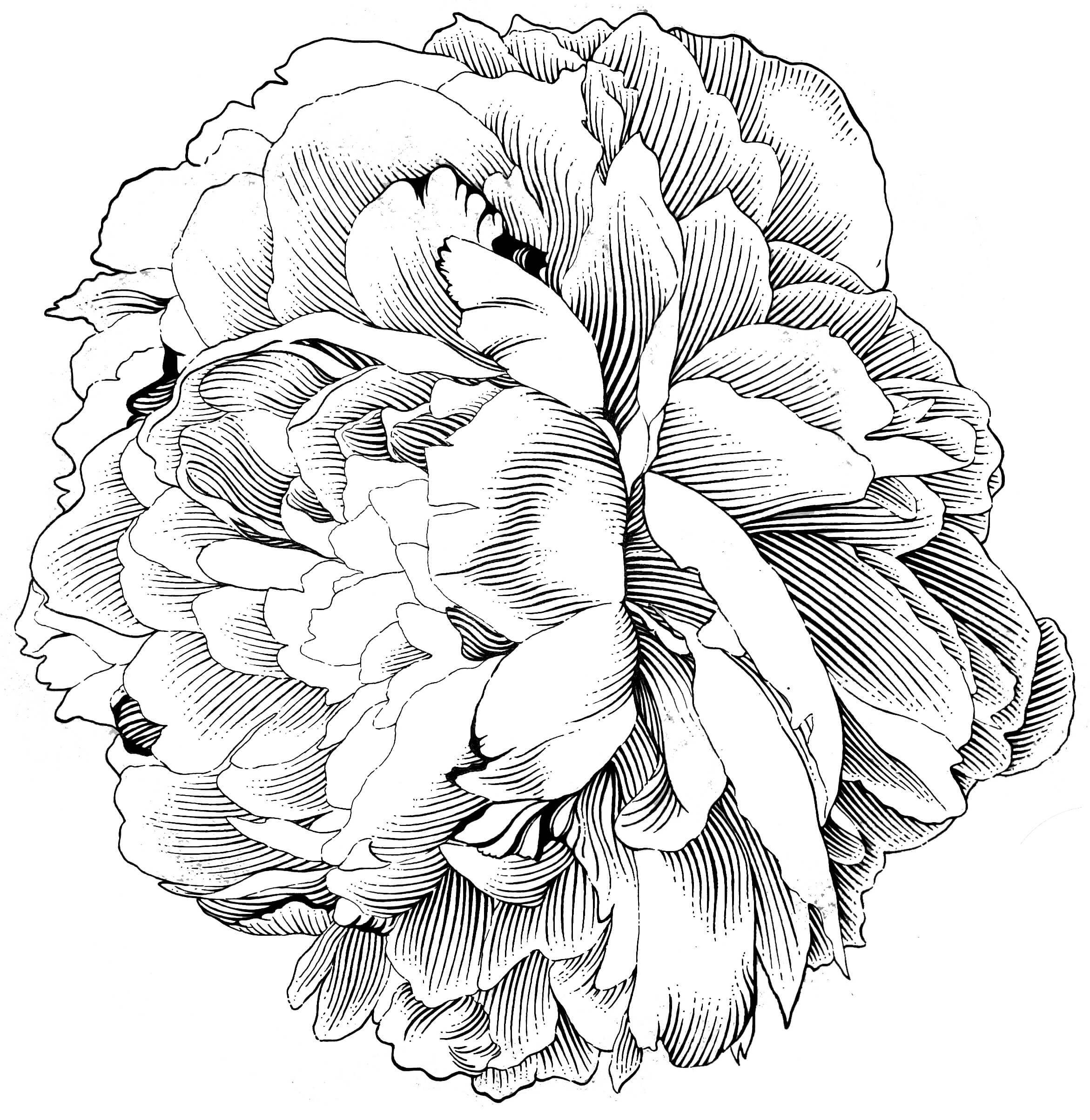 Пион - рисунок, шаблон, трафарет | БАТИК и Я