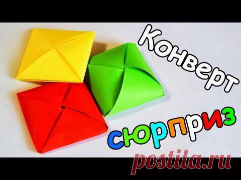 КОНВЕРТ - ОТКРЫТКА с СЮРПРИЗОМ ВНУТРИ / ОРИГАМИ из БУМАГИ