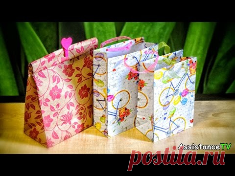 КАК СДЕЛАТЬ ПОДАРОЧНЫЙ ПАКЕТ из УПАКОВОЧНОЙ БУМАГИ СВОИМИ РУКАМИ