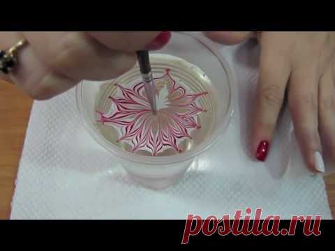 Red, white & gold water marble nail art tutorial/водный маникюр бордо с золотым