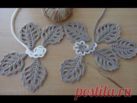 УРОКИ ВЯЗАНИЯ. Ажурный листик с прожилками. Вязание крючком.