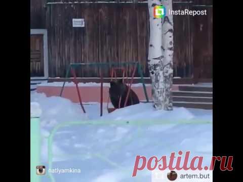 Это Колпашево)) Медведь качается на качельке около Рыбника - YouTube