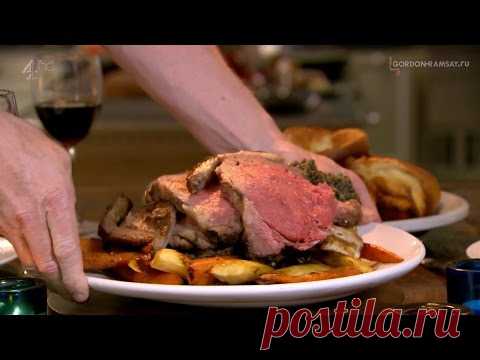 Запеченная фаршированная говядина с гарниром из пудингов с хреном