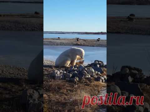 Редчайшие кадры: полярный медведь гладит собаку по голове