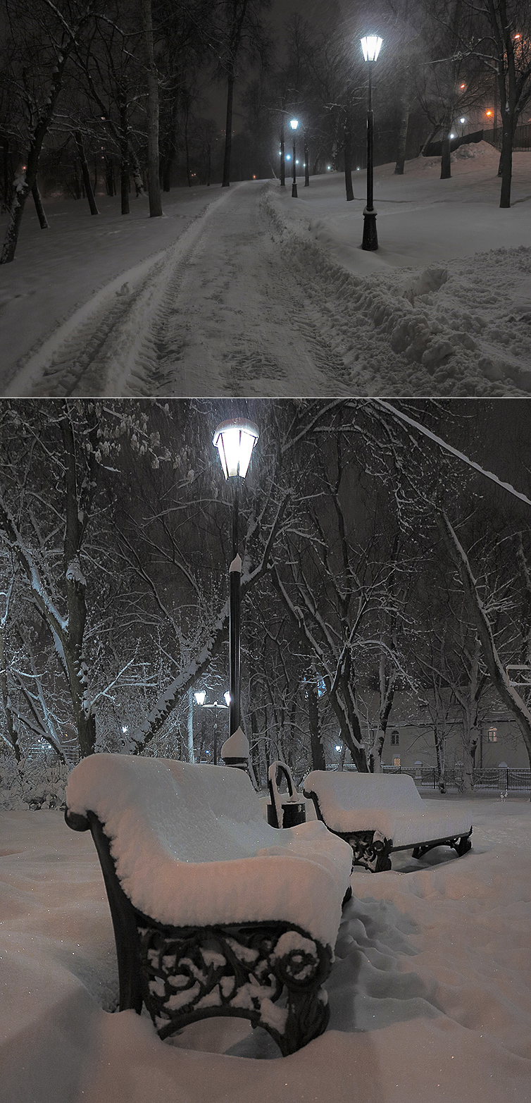 Снегопад в Москве. Фото. Прогулка по парку Москвы в снегопад.