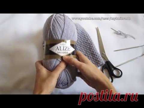 Вязание спицами. Шапка жемчужным узором. Шапка бини.