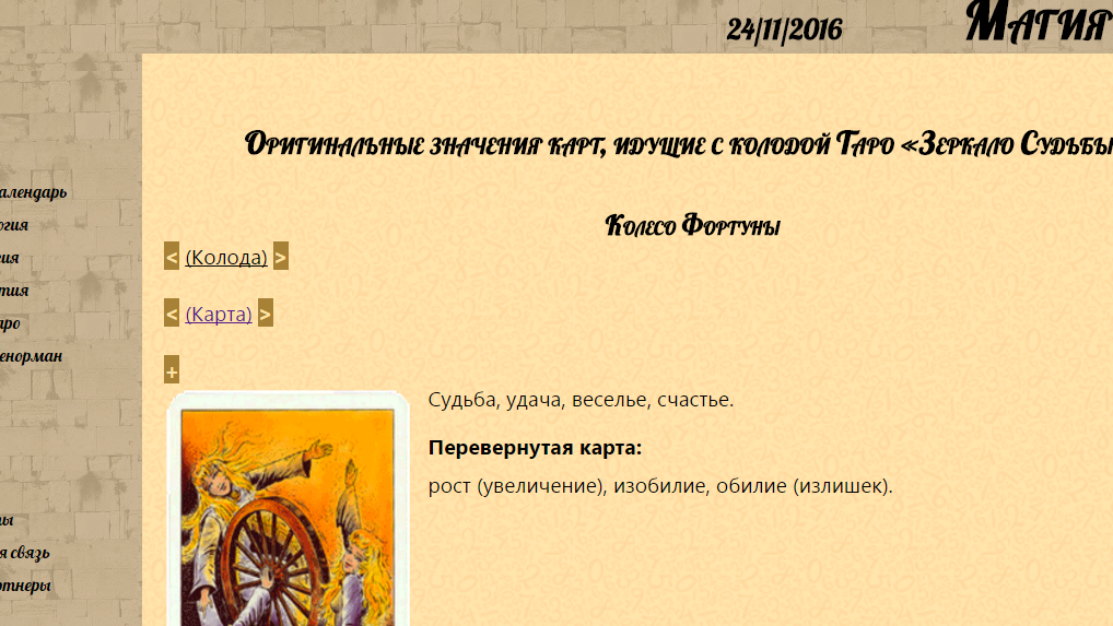 magiaсhisel.ru: Колесо Фортуны. - Источник : Оригинальные значения карт, идущие с колодой Таро «Зеркало Судьбы». Толкование карты.