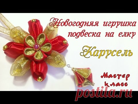 Новогодняя игрушка на елку подвеска канзаши из лент. DIY Christmas toy pendant on the Christmas tree - YouTube