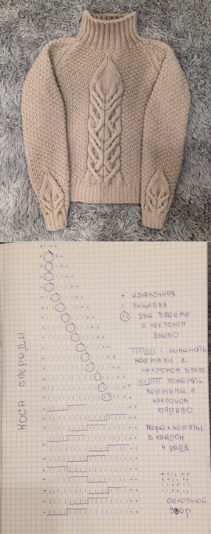 Модный свитер спицами. Теплый свитер спицами схема. |