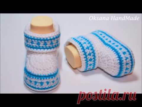 Пинетки крючком Орнамент Мастер класс. Booties crochet DIY