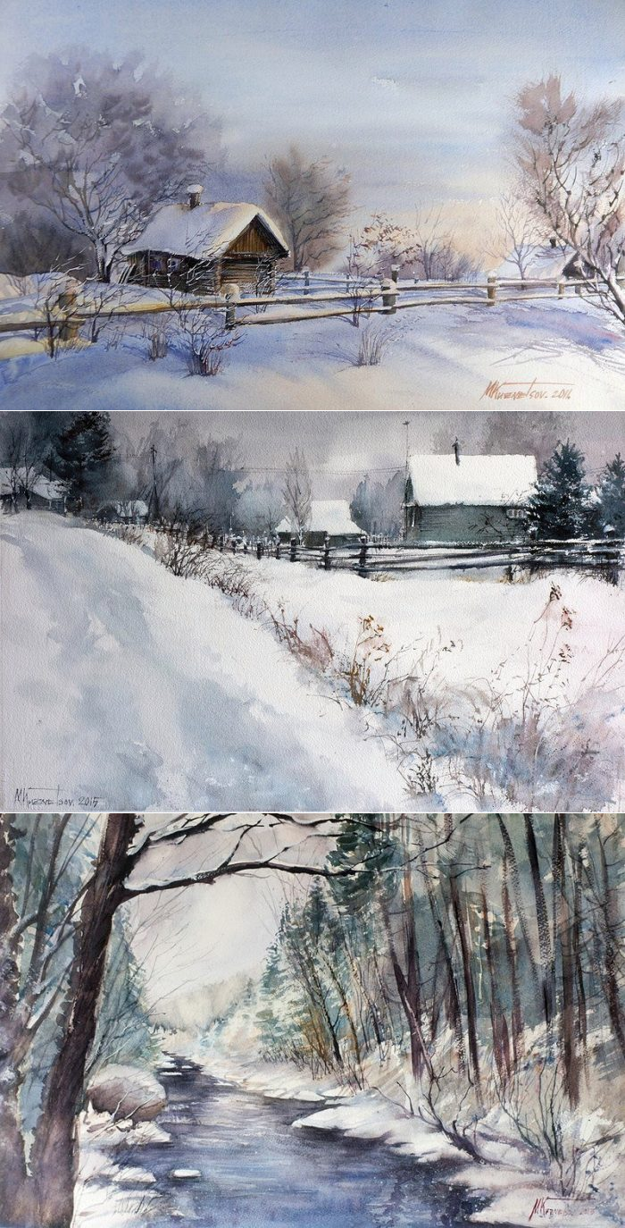Художник Михаил Кузнецов. Пейзажи. Акварель