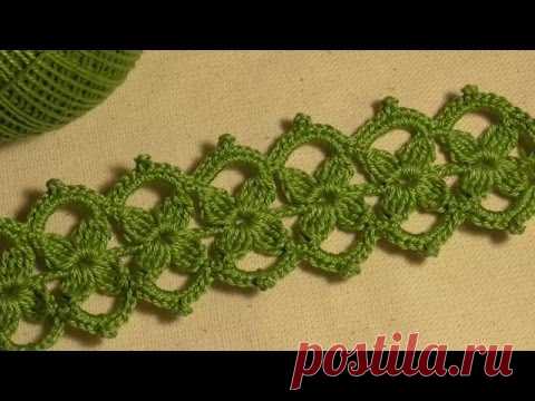 Тесьма с маленькими цветочками вязанная крючком. Ирландское кружево. Видео-урок.