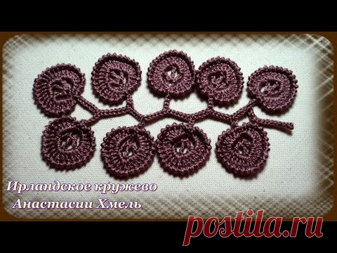 Видео-урок. Вязанная крючком веточка. Ирландское кружево.