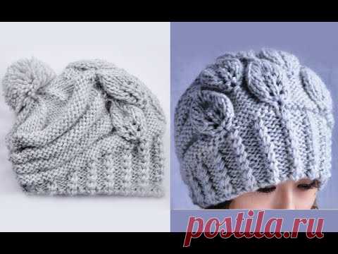 Вязание шапки спицами "Листочки". How to Knit a HAT