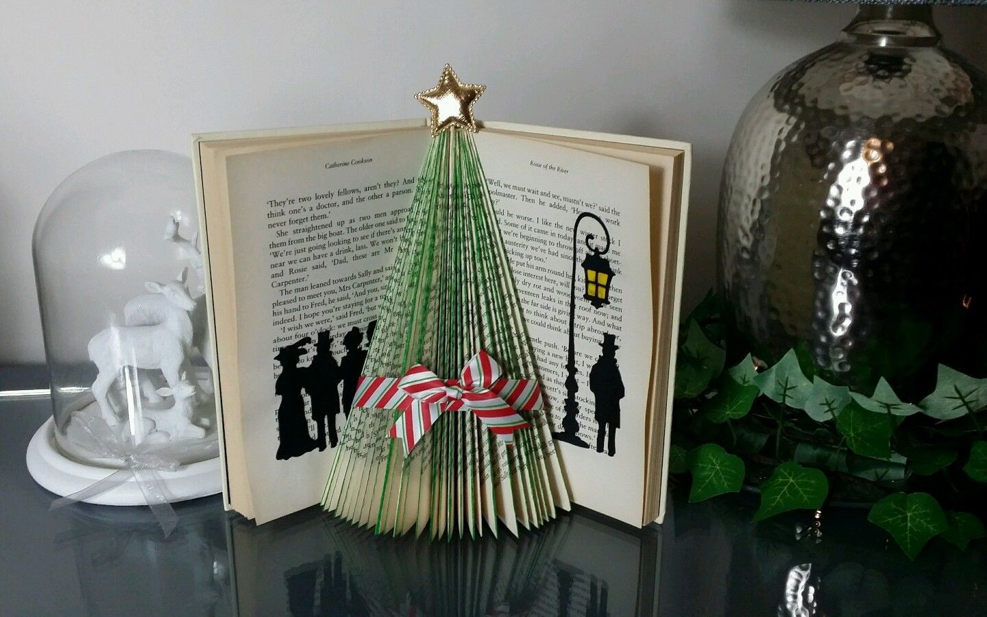 Folded book art victorian christmas tree carolers shelf table decoration #8 | eBay