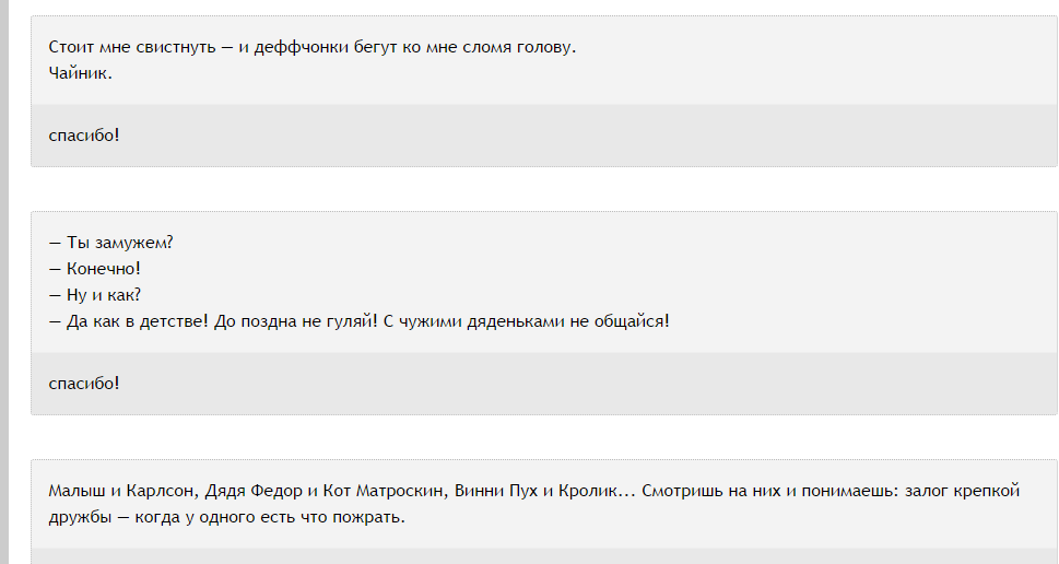 - Папа, а вы в детстве играли во дворе? - Да, очень любили играть в хоккей прямо во дворе. Ставили ящики вместо ворот и играли! - А был самый запоминающийся момент? - Конечно! Я тогда кинул шайбу и попал прямо в сумку мужику, который только что отоварил талоны на водку... - Выпуск №151 — Вокруг смеха - анекдоты