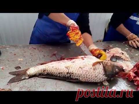 SUPER! Разделка рыбы сазана карпа по-атырауски (рынок Коктем) / Cutting Fillet Fish carp in Atyrau