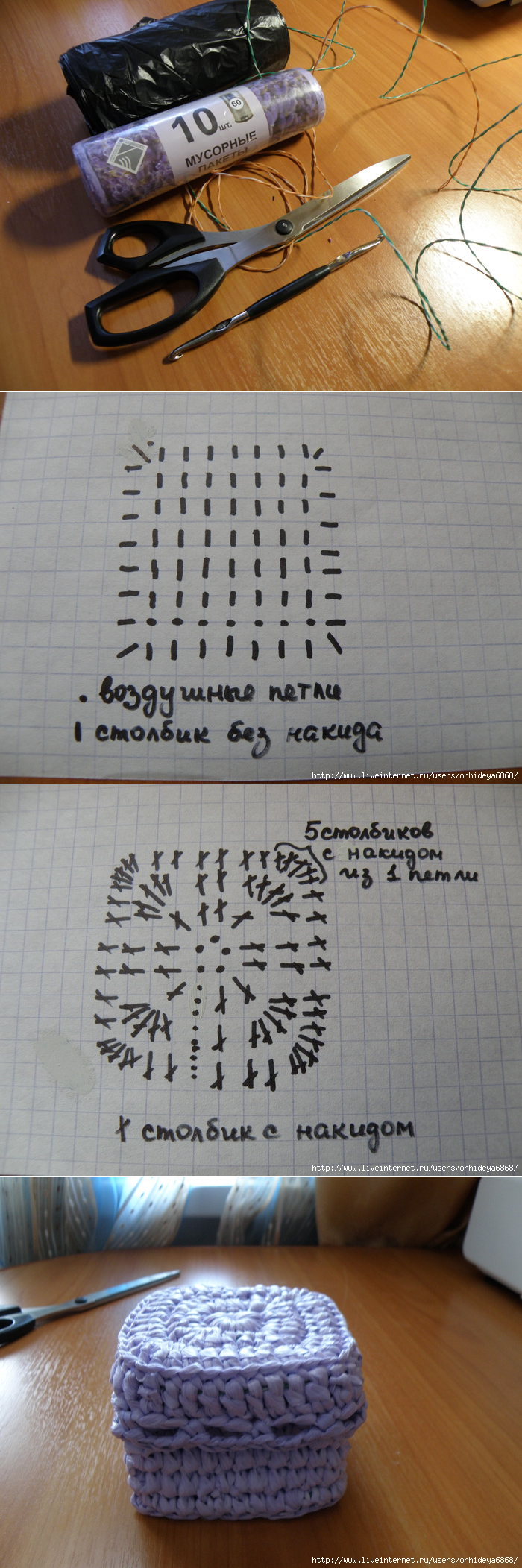 Обещанный МК по вязанию коробок из мусорных пакетов