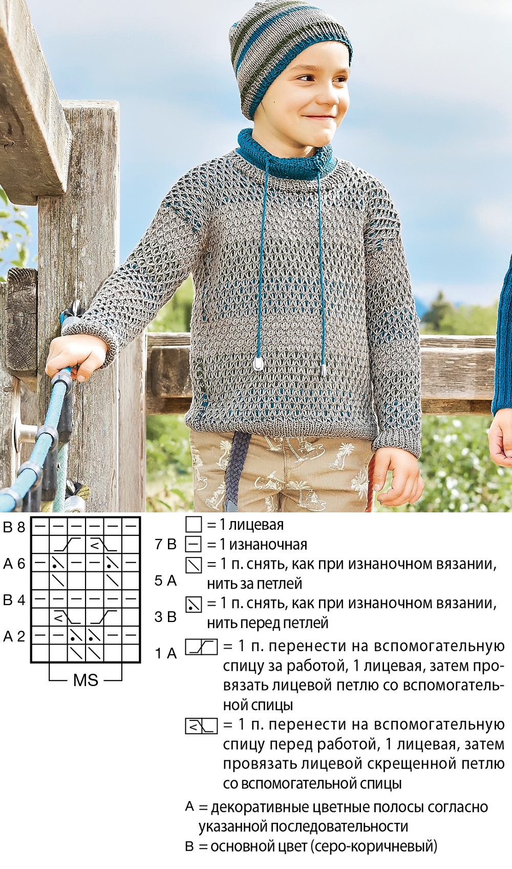 Свитер с узором со спущенными петлями - схема вязания спицами. Вяжем Свитеры на Verena.ru