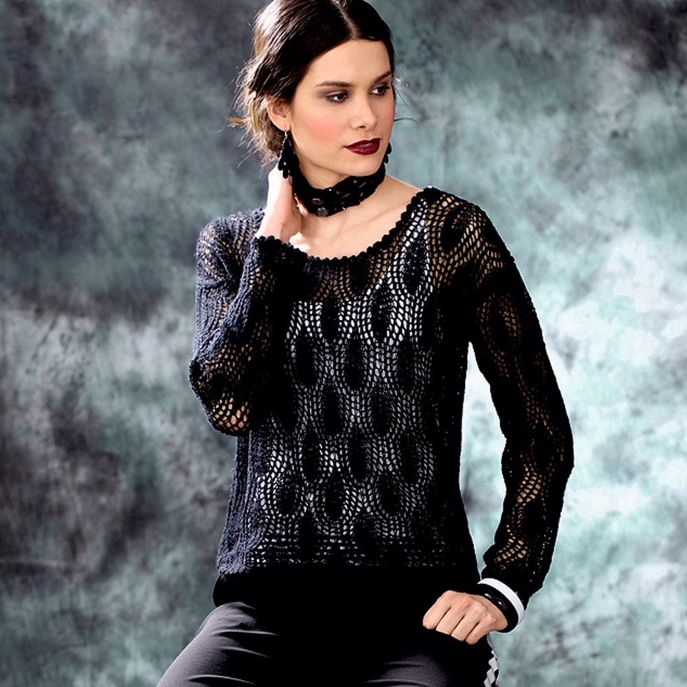 Черный ажурный свободного кроя джемпер,р.36, 38/40, 42