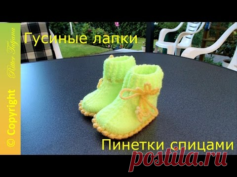 Гусиные лапки. Пинетки спицами.