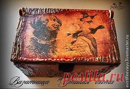 Визитница "Утиная охота" - коричневый,визитница,визитки ручной работы