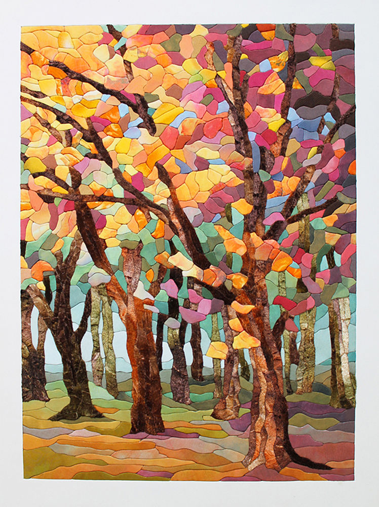 «Осенний лес»: картина в технике пэчворк без иглы - Ярмарка Мастеров - ручная работа, handmade