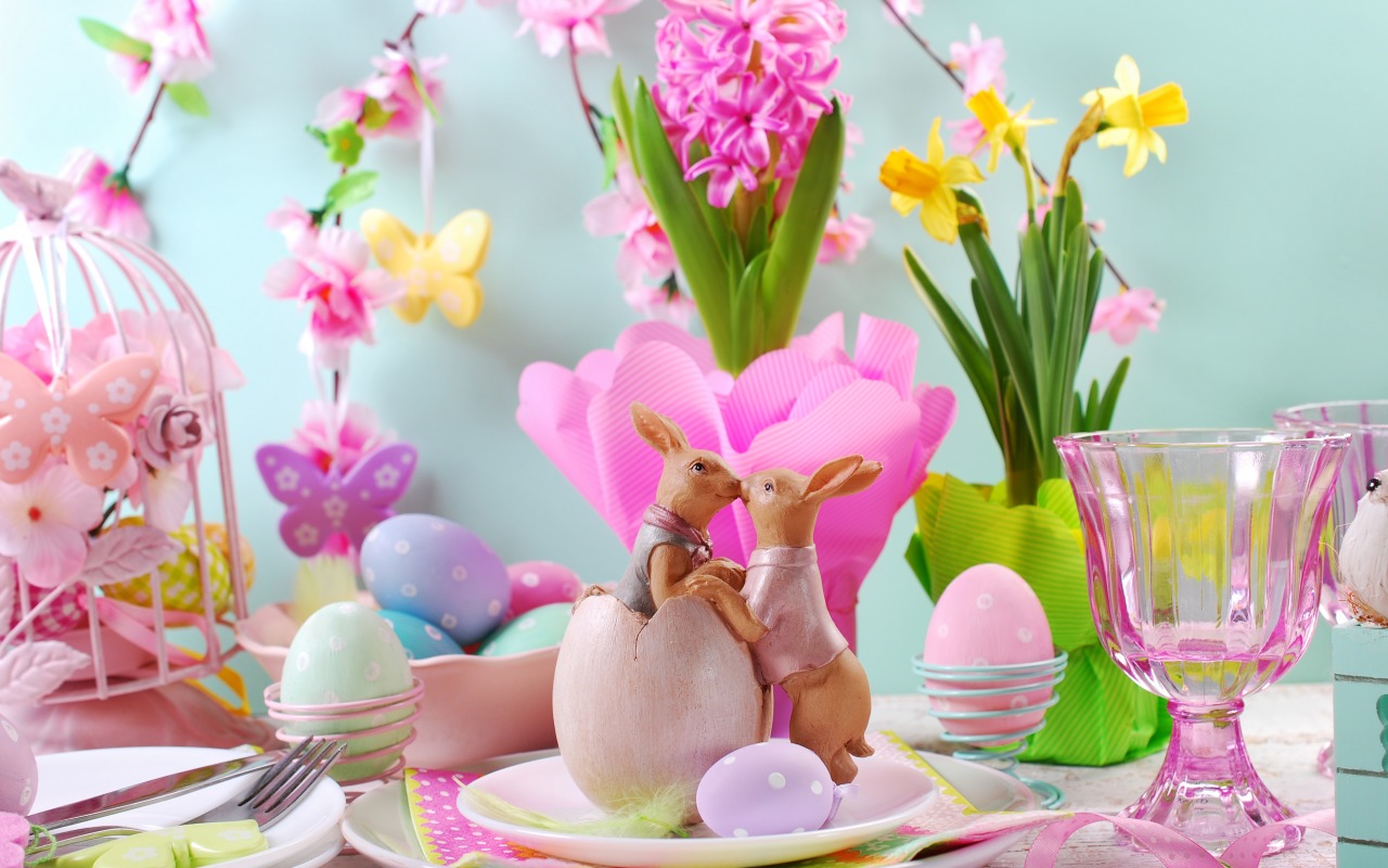 Скачать обои цветы, eggs, spring, Happy, flowers, Пасха, яйца, Easter, decoration, весна, раздел праздники в разрешении 1280x800