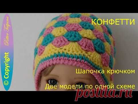 Конфетти. Шапочка крючком. Две модели по одной схеме