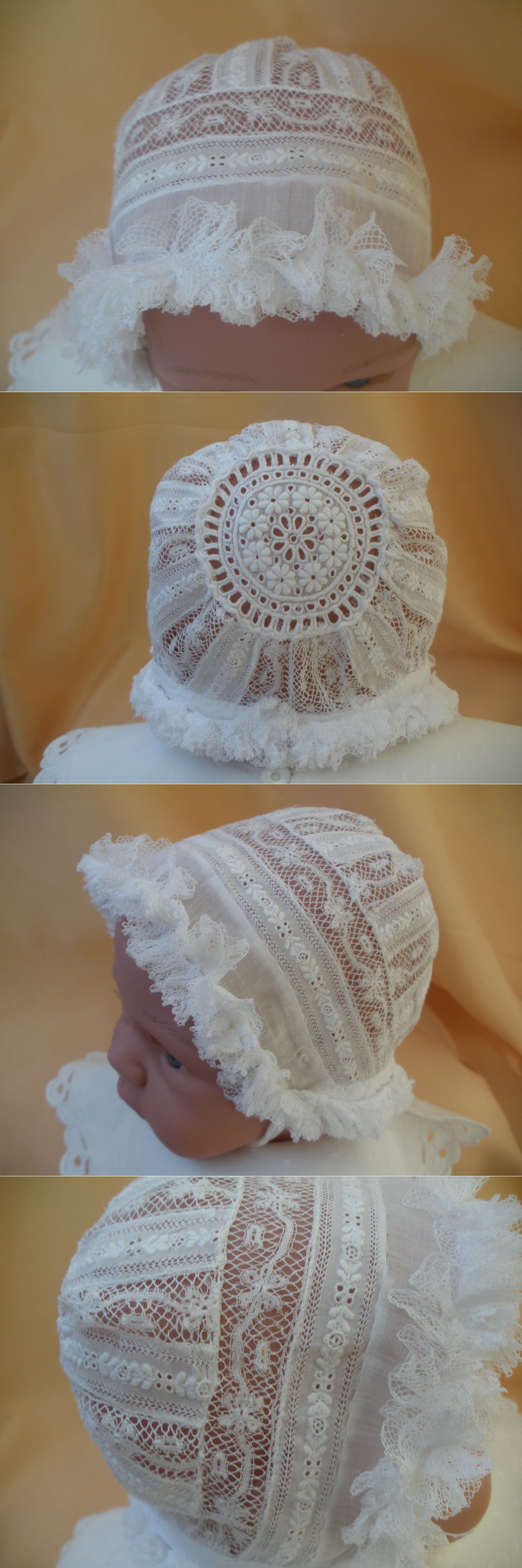 Articles vendus > Linge ancien de bébé > LINGE ANCIEN/ Adorable petit bonnet de bébé en linon réalisé à la main avec dentelles et entre deux brodé - Passion de Blanc - Broderie ancienne - Antique & Vintage French linen