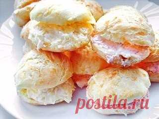 Гужеры — французские заварные булочкиКоличество булочек: 24Ингредиенты:Вода — 125 мл (1/2 стакана)Сливочное масло — 50 гПшеничная мука в/с — 100 гКартофельный крахмал (1 ст. ложка с небольшой горкой) — 20 гЯйца куриные — 3 шт.Твёрдый сыр — 100 гСоль — 1 щепоткаНачинка №1:Твёрдый сыр — 50 гЧеснок — 2 небольших зубчикаМайонез — 3 ст. л.Начинка №2:Сёмга (жидкость слить) — 1/2 баночки (240 г)Творожный сыр ("Крем-бонжур") — 1/2 баночкиИкра мойвы ("Санта-Бремор", с лососем) — 1-...